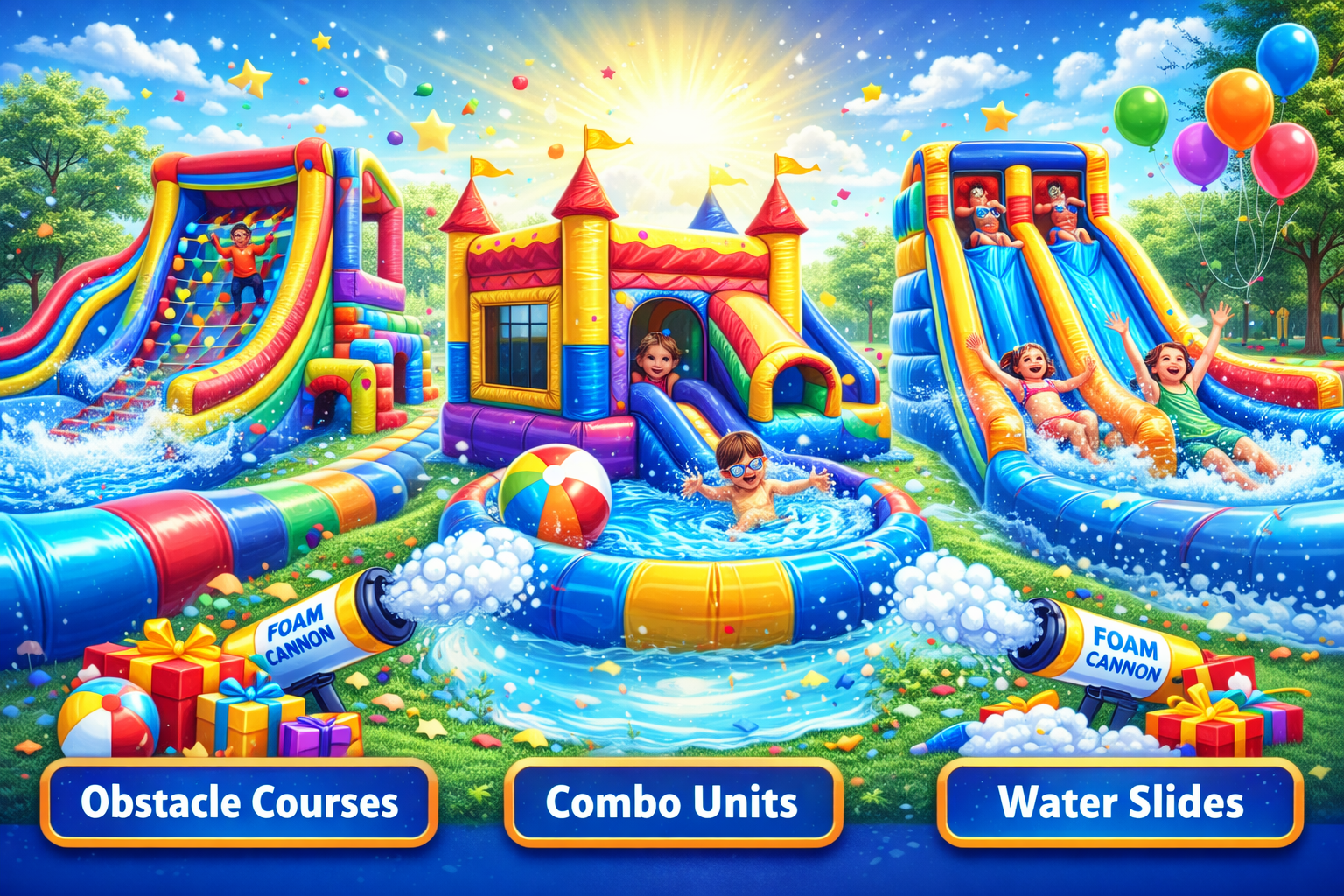 I hired a bouncy castle for my useless son's birthday party. The event was satisfactory.